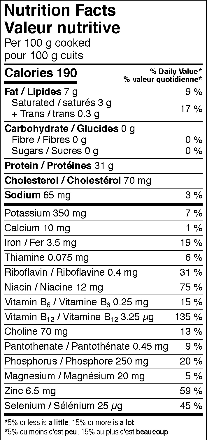 Nutrient values from Health Canada, Canadian Nutrient File, 2015. Food code 6128.