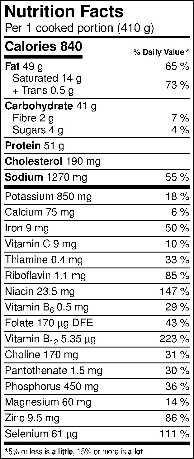 Excellent Source of: Iron, Thiamine, Riboflavin, Niacin, Vitamin B6, Folate, Vitamin B12, Choline, Pantothenate, Phosphorus, Zinc, Selenium