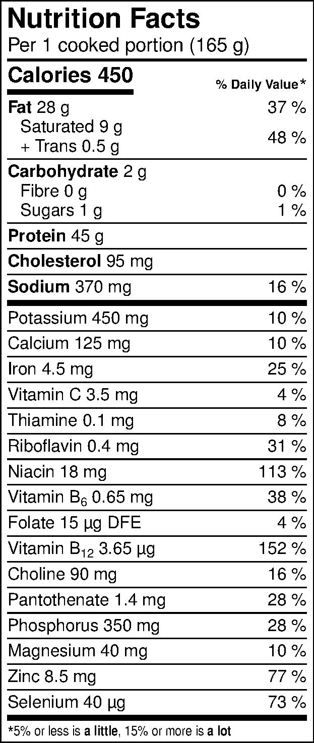 Excellent Source of: Iron, Riboflavin, Niacin, Vitamin B6, Vitamin B12, Pantothenate, Phosphorus, Zinc, Selenium