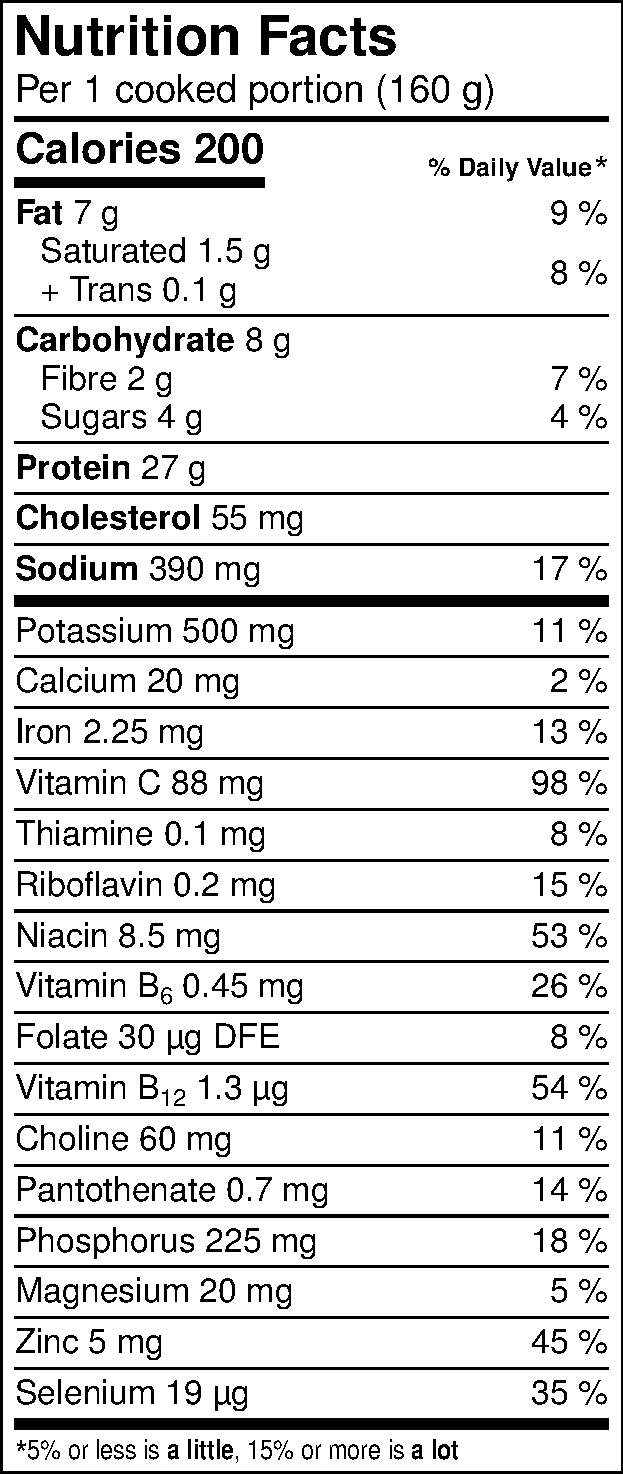 Excellent Source of: Vitamin C, Niacin, Vitamin B6, Vitamin B12, Zinc, Selenium