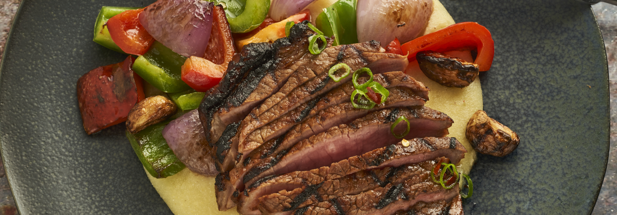 Simple ingredients combine for a zesty marinade for value-priced Eye of Round Steaks. The stir-fried vegetables are ready in just minutes and add a burst of colour and antioxidants the to plate. Serve over steamed rice or creamy polenta.